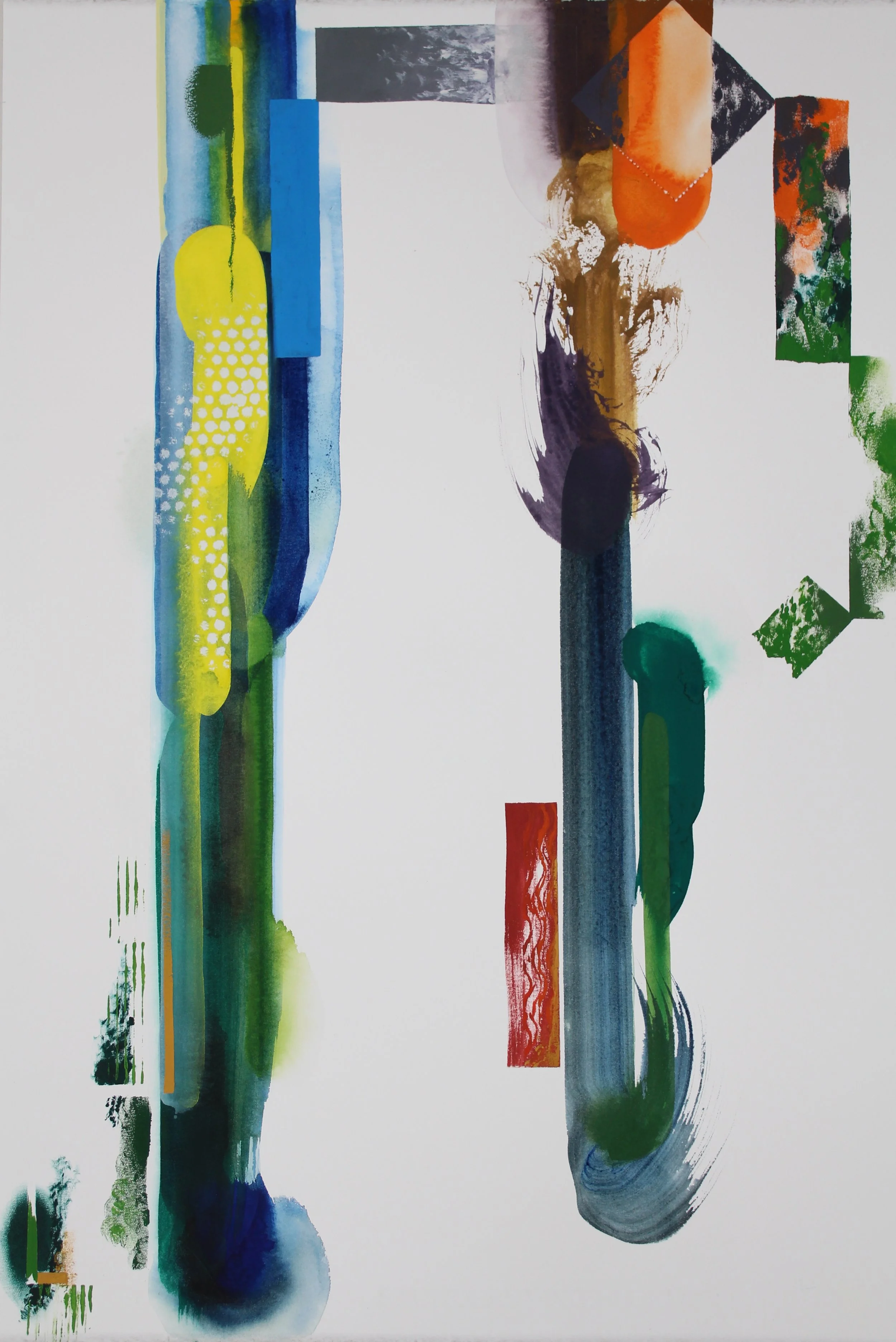 IDN trained at The Brighton School of Art, and subsequently taught fine art. He closely mentored those he taught and remains an incisive original thinker: “How does drawing make one see things clearer?” or “How can we engage afresh with that which is most familiar to us”? His gouache paintings reflect on these reductive and abiding preoccupations. All the images explore his unique language about terrains, landscapes and viewpoints in terms of lines, mark making and brushstrokes. His method of application interchangeably using gouache, stencils and spray encourages the viewer to analyse texture, colour and tone but also encompass the work as a whole- enigmatic and physical.